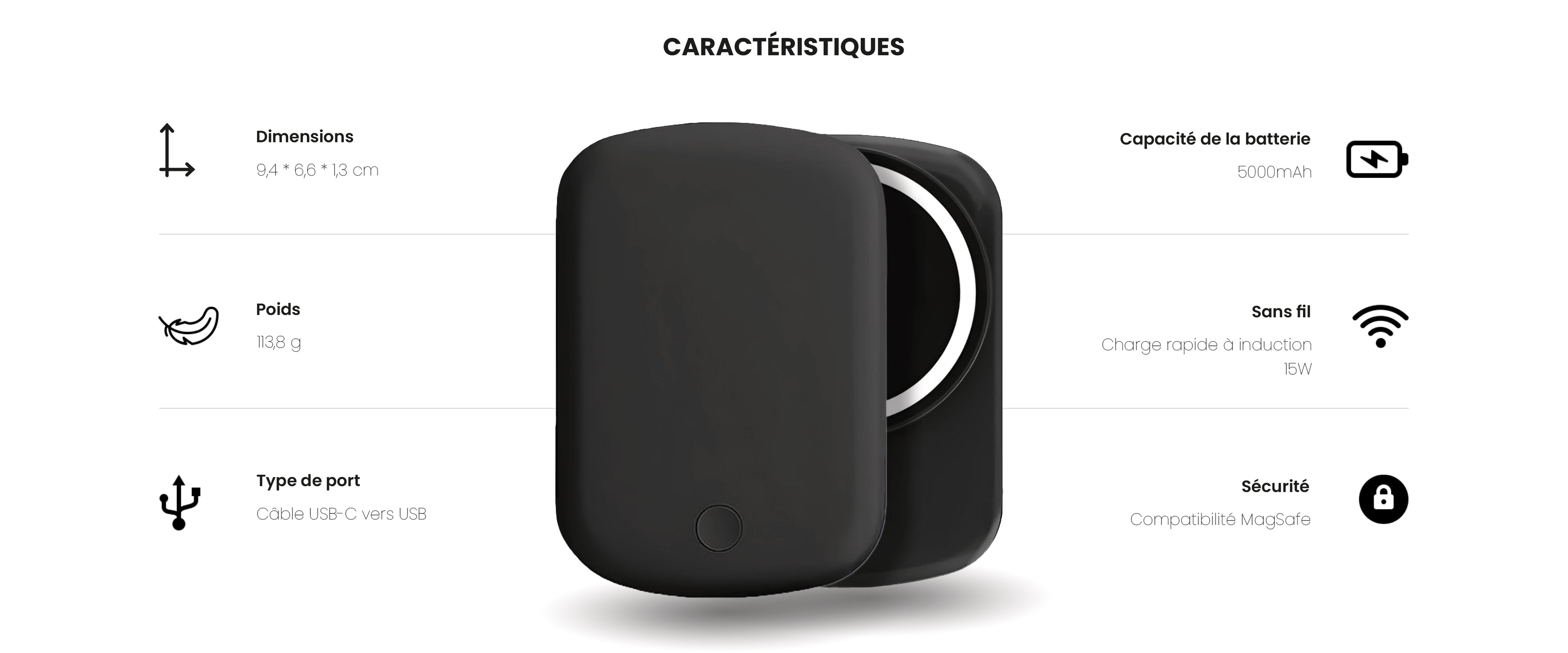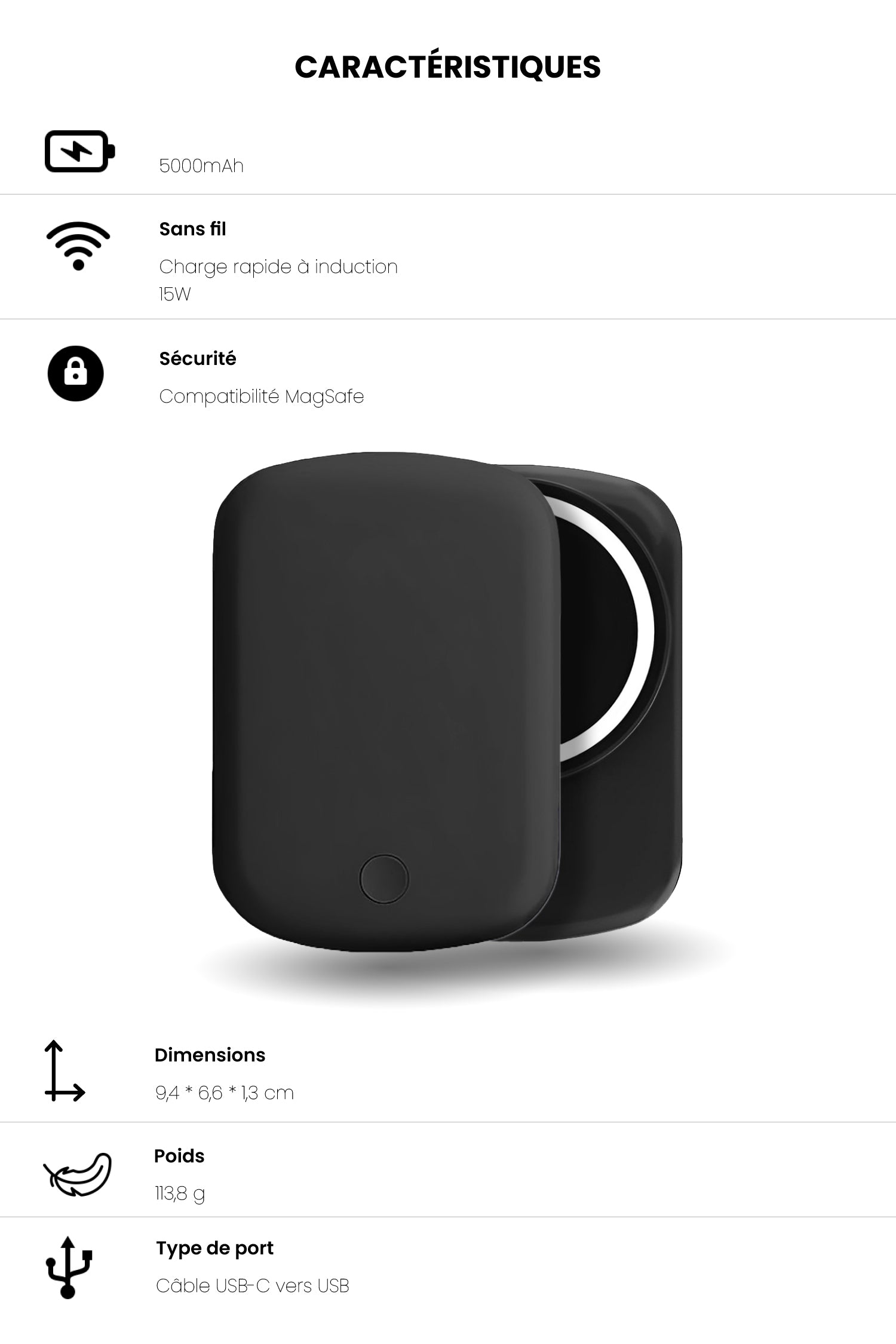 - Liberté Sans Fil : Oubliez les fils encombrants et profitez de recharger où que vous soyez.
